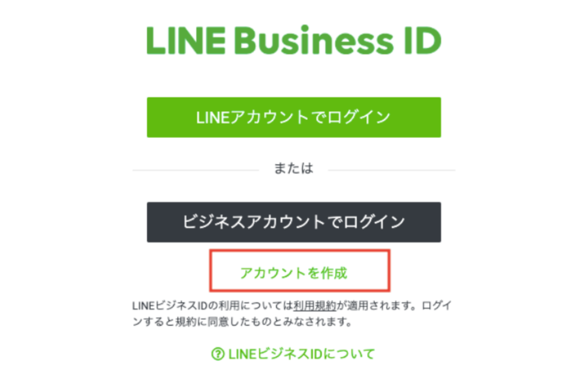 ①LINE公式アカウントのWEBサイトにアクセスし、「アカウントの開設」または「LINE公式アカウントをはじめる」をクリックします。